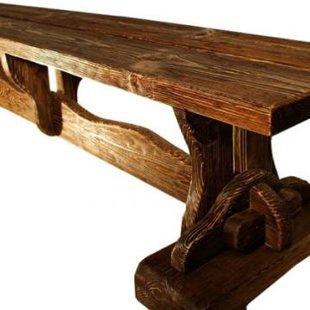 Несмотря на свой состаренный внешний вид, мебель обладает высокой прочностью и устойчивостью к внешним воздействиям. Любая царапина, пятно или скол не будут видны на поверхности, а в случае необходимости без проблем могут быть выведены. Мебель изготавливается из различных пород древесины, прошедших предварительно весь процесс сушки и обработки.