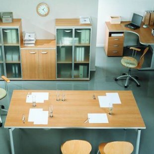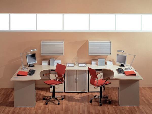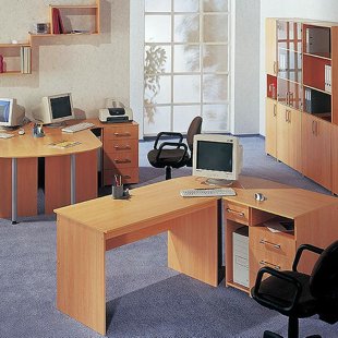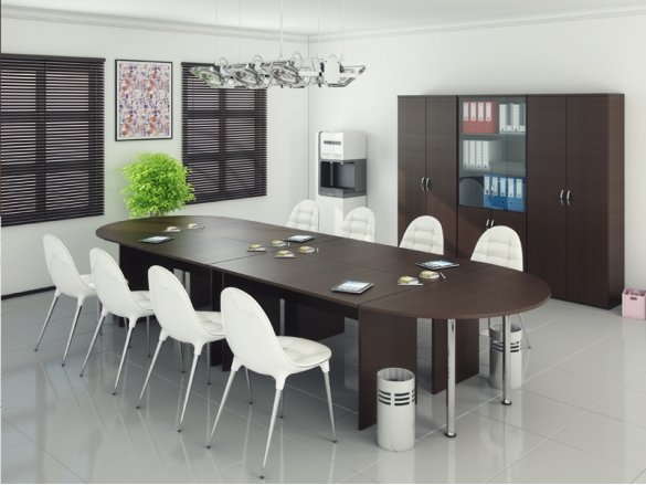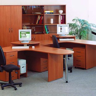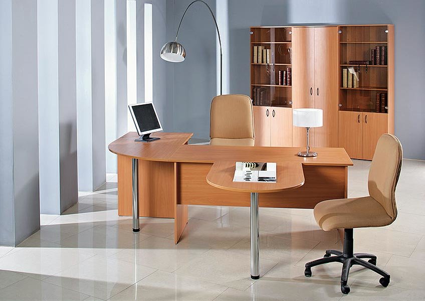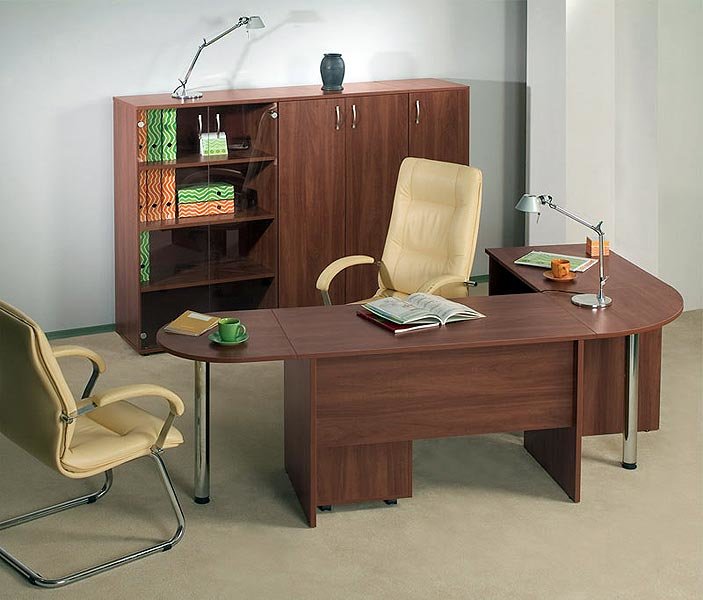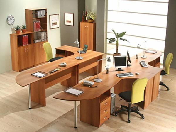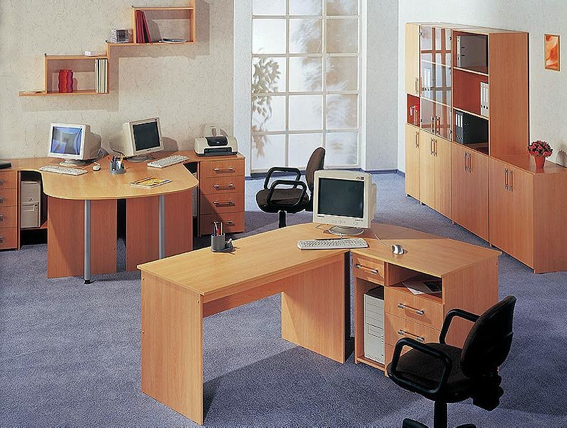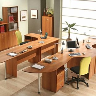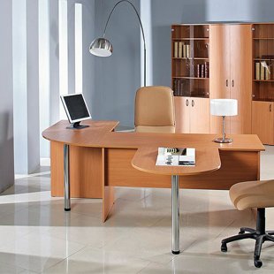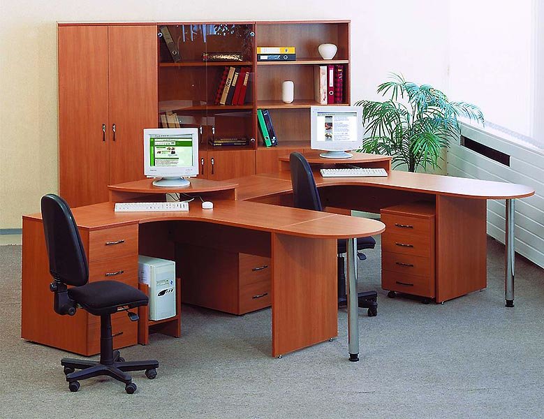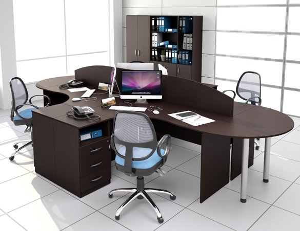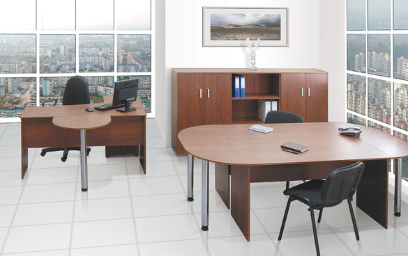 - офисные столы для персонала, различных форм и конфигураций: прямые, круглые, радиусные, овальные.
